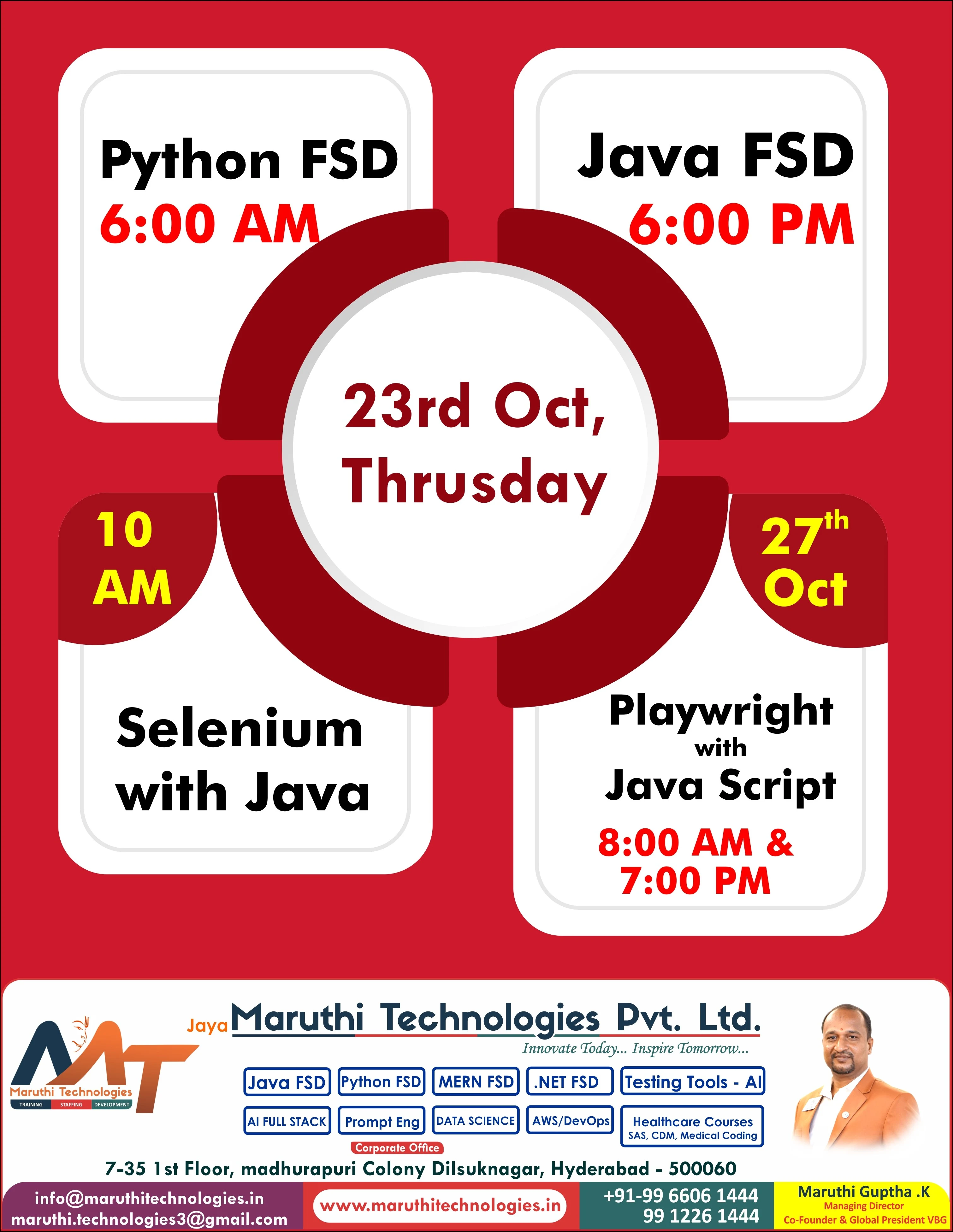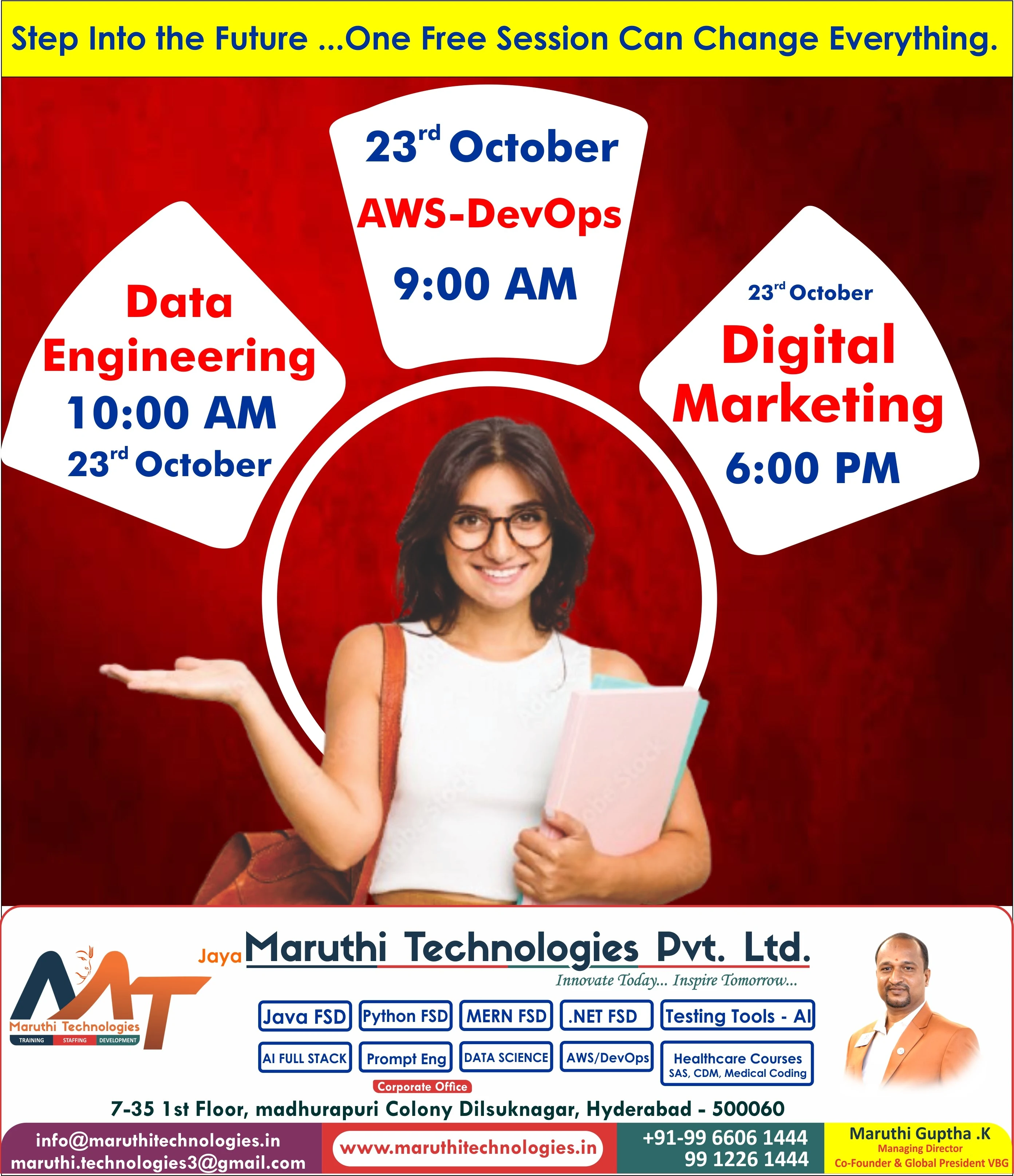 "Maruthi Technologies has been honored with the Best IT Training Award, a recognition of our excellence in delivering high-quality, industry-focused training and empowering thousands of students with successful IT careers.Best It training in dilsuknagar"